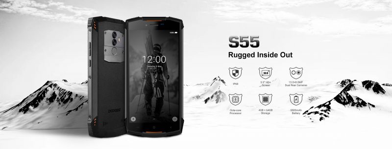 Le DOOGEE S55 est un smartphone de 5.5 inch HD resistant aux chocs, IP68 sous Android 8.0 avec 4GB RAM