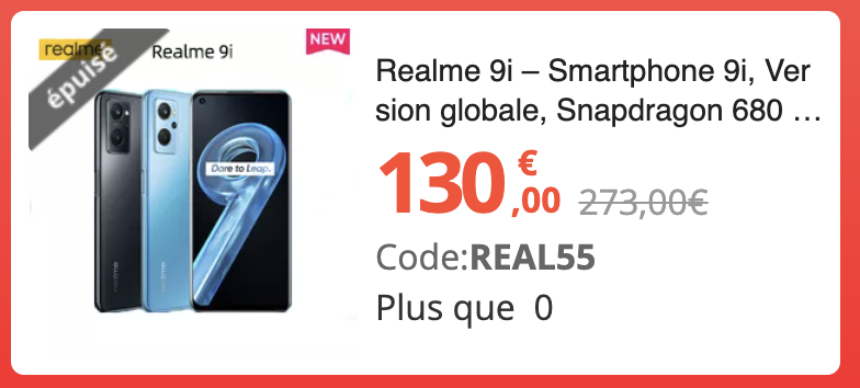 -Code promo Realme 9i Version globale, Snapdragon 680 Octa Core, 6.6 pouces, Charge de fléchettes 33W, caméra 50mp, batterie 5000mAh