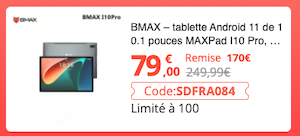 Code promo tablette Android 11 de 10.1 pouces Bmax MAXPad I10 Pro à 79€